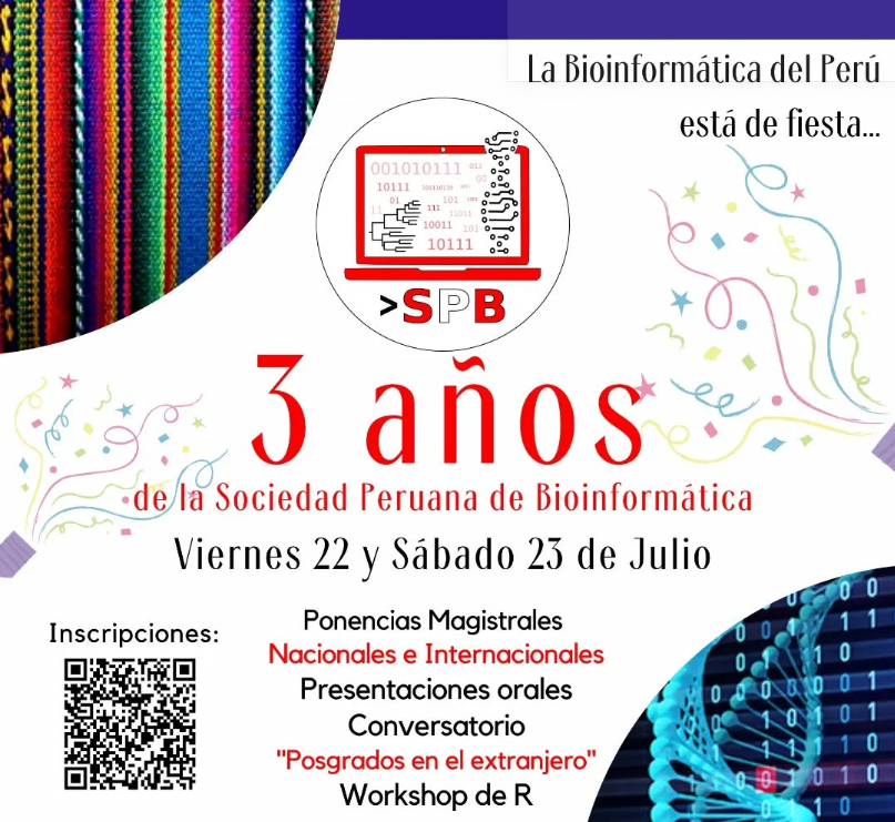 El 22 y 23 de julio de 2022, la SPB y RSG Perú celebraron su aniversario con un ciclo de videoconferencias en modalidad virtual (Zoom) y transmisión por Facebook Live. La agenda incluyó ponencias magistrales nacionales e internacionales, presentaciones orales, el conversatorio “Posgrados en el extranjero” y un Workshop de R (nivel básico); además, se presentó la nueva directiva de RSG Perú. El encuentro fortaleció habilidades técnicas, visibilizó líneas de investigación emergentes y amplió las redes de colaboración entre estudiantes y profesionales del país y la región.